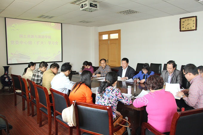4月23日下午,国旅学院在院四楼会议室召开了2015年上半年党委中心组(扩大)学习会议,重点学习了如何加强基层党支部建设 ,发挥战斗堡垒作用。学院全体党委委员、支部书记和辅导员参加了学习会,会议由党委书记吴春雷主持。