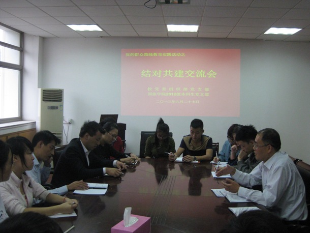 交流会上,罗振介绍了国旅学院本科生党建工作实施的情况,希望组织部党支部能够对学生党支部进一步加强指导,朱为民对组织部党支部的总体情况进行了介绍,希望通过结对共建更好地加强与学生党员的交流,倾听学生的声音,收集广大学生的意见和建议,不断增强党支部的战斗堡垒作用,优化人才培养模式,更好地解决学生的实际问题。随后,与会双方支部成员还就学生党支部建设现状的相关问题进行了深入交流。国旅学院2012级党支部成员对入党名额、党支部活动开展、共产党知识普及宣传等问题提出了建设性的意见和建议。双方还约定建立了定期互访的交流机制,以便及时、有效地发现和解决问题,推进工作。通过交流,双方增进了交流与学习,起到了良好效果。