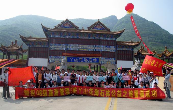 学院在对广大团员宣传科学发展观的丰富内涵和精神实质的同时,积极探索适合广大青年学生喜闻乐见的学习实践科学发展观模式,采取与专业特色结合的方法,先后组织了“生态旅游实践之丫山花海石林”、“马仁奇峰风景区无障碍设施调查”和“四褐山周边景区旅游可行性开发调查”等学习实践科学发展观调研活动。