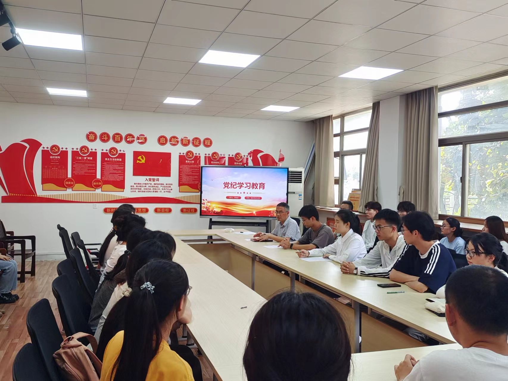 贾冠忠给新发展党员上了一堂生动的党纪学习教育专题党课。他结合自己的学习工作经历带领新发展党员对《中国共产党纪律处分条例》重点内容进行了详细解读,并勉励新发展党员要扎实开展党纪学习教育,让遵规守纪成为自觉行动。