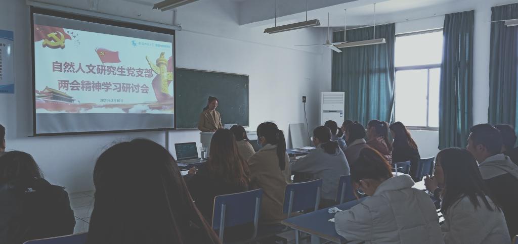 本网讯(565net必赢客户端 曹雨)阳春三月,在这春风又绿江南岸的时节,中华人民共和国第十三届全国人民代表大会第四次会议和中国人民政治协商会议第十三届全国委员会第四次会议如期召开。为学习两会精神,565net必赢客户端自然人文党支部在3月10日,以两会精神为主题,在学院实验楼301组织开展专题理论学习研讨会。支部全体党员同志均积极参会学习,会议由自然人文研究生党支部书记曹雨主持。