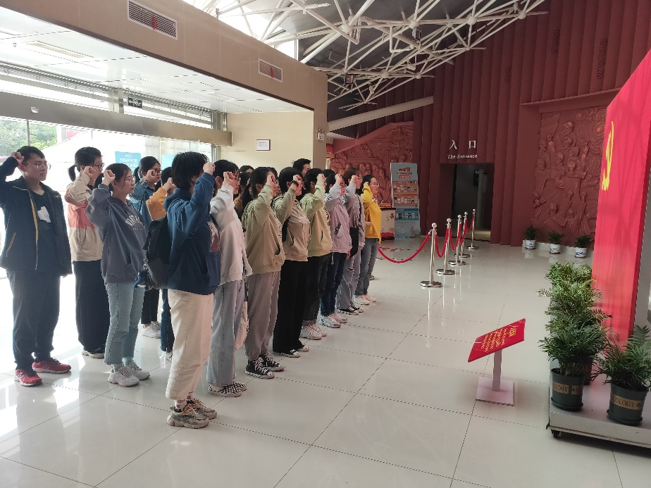 最后,在严肃的氛围中,全体支部党员在纪念馆中重温入党誓词,宣誓声久久回荡在每位共产党员的心中,激励着同志们增强自己的党员意识和党性修养,不忘初心,永葆初心使命。