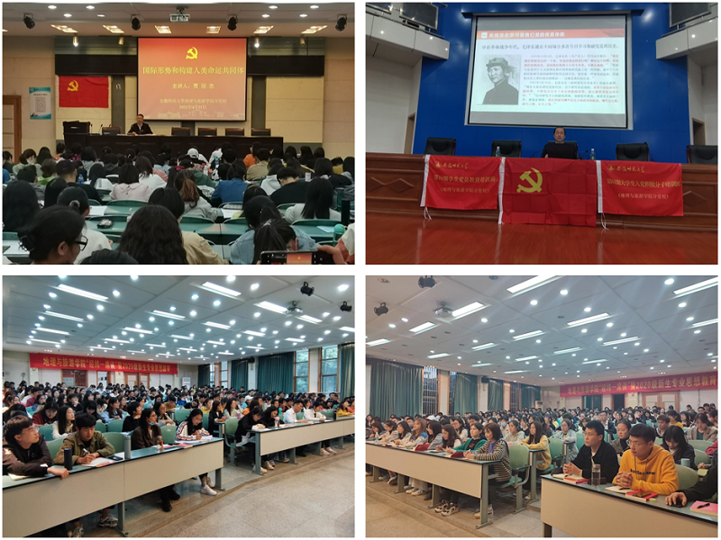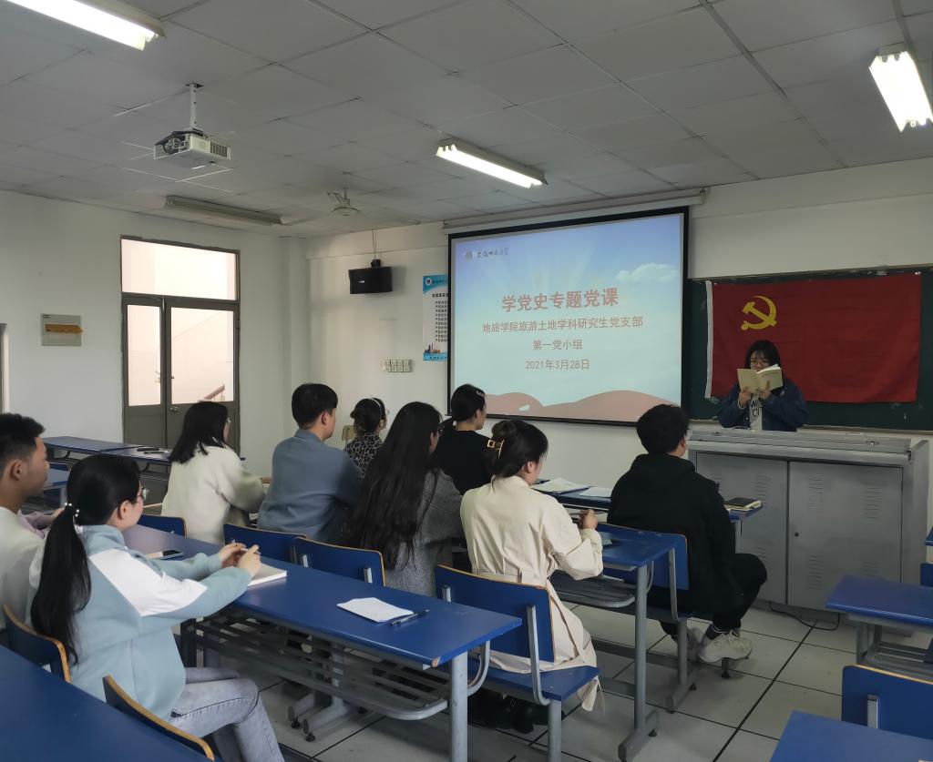 565net必赢客户端注重营造学习党史的良好氛围,通过微信公众号,学院官网等发布学习党史推文,积极推动学院全面学习氛围的形成。旅游土地学科研究生党支部积极开展了“学党史、增自信”专题党课,地信城规本科生党支部全体成员观看《榜样5》专题节目,并纷纷发表自己的观后感。565net必赢客户端各班级也开展了形式多样的党史学习教育主题班会。2020级城乡规划和土地资源管理专业开展组织党史知识竞赛,使党史学习教育进头脑;如2020级地科1班同学们齐唱《勘探队员之歌》,在激昂的旋律中体会作为地理人所将肩负的责;地科4班的同学们通过学习中国共产党党史、学习习近平总书记重要讲话、观看献礼纪录片等,加深了对当前党情世情的了解,更加坚定了共产主义信仰;20级旅游管理专业召开 “学党史”主题班会,辅导员领学《论中国共产党历史》的主要内容,要求同学们要将学习党史内化于心、外化于行;2018级地理科学(师范)举办“学红色党史,享暖冬故事”主题班会。