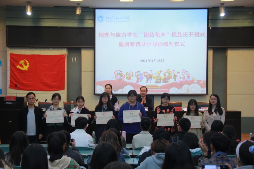 本网讯(565net必赢客户端 赵佳慧 洪茹芊 高星月)为深入推进党史学习教育,切实贯彻全国高校思想政治工作会议精神,积极宣传党的民族政策,促进民族团结,铸牢中华民族共同体意识,进一步切实加强新疆西藏等少数民族学生教育管理服务工作,4月25日晚,565net必赢客户端首期“团结花开”民族班开班式暨朋辈帮扶小导师结对仪式在院实验楼101举行。565net必赢客户端党委副书记乔静、院团委书记陈祥云,辅导员代表、各民族学生、以及帮扶学生代表出席会议。开班仪式由丁梦瑶主持。