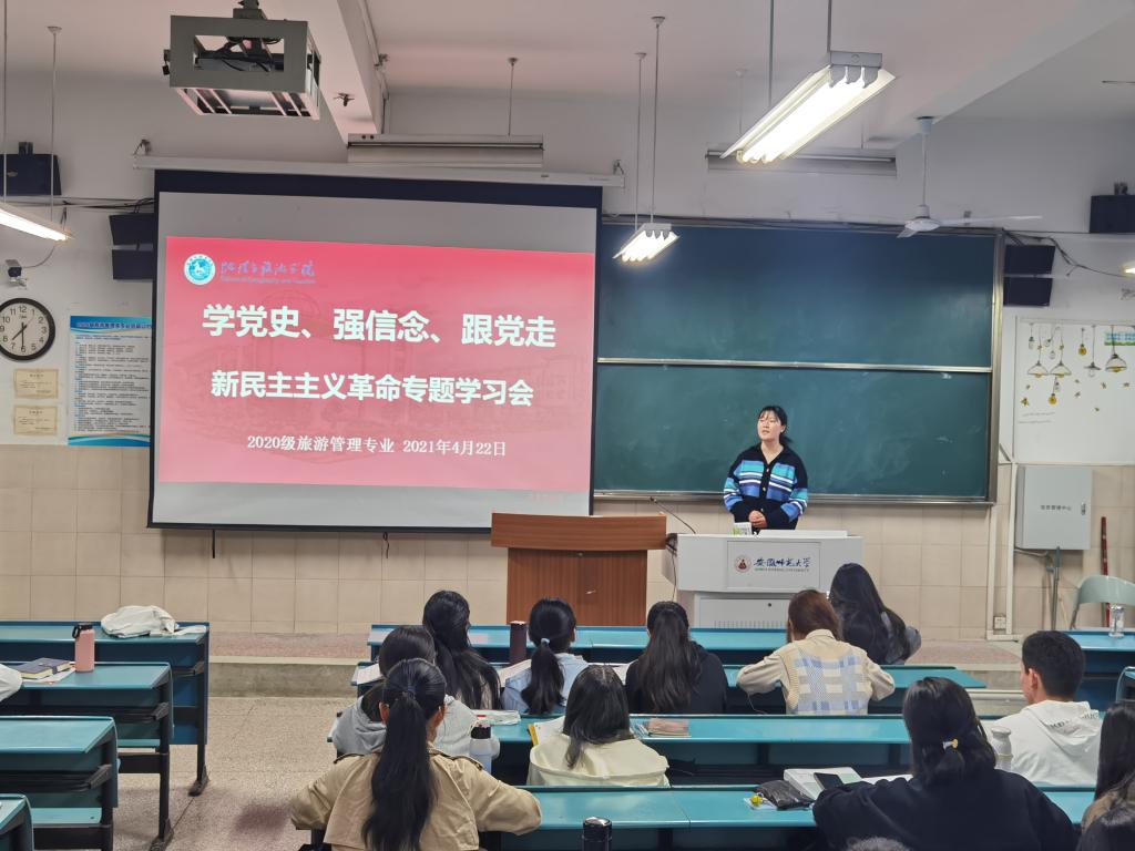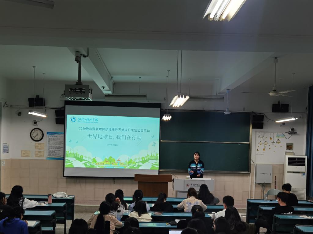 本网讯(565net必赢客户端 赵佳慧 孙云峰)为加强班级班风建设,学好党史党章,同时迎接第52个地球日的到来。4月22日晚7点,2020级旅游管理专业于行知楼4号楼203教室召开“学党史、强信念、跟党走”专题学习会暨“保护地球”世界地球日主题团日活动。此次活动由团支部书记徐雨菲主持,2020级旅游管理专业全体同学参加。