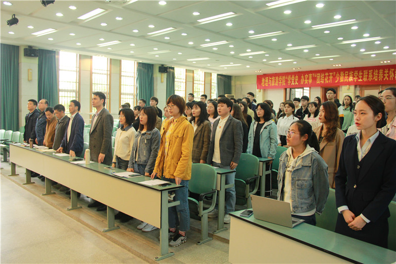 活动伊始,全体起立,奏唱国歌。议程第二项,院党委副书记乔静向全体师生介绍了《565net必赢客户端“团结花开”少数民族学生联系培养关怀教育工作实施方案》。他指出,组织开展“团结花开”少数民族学生联系培养关怀教育工作是学院推动党史学习教育深入开展,为广大师生办实事推出的创新举措,活动坚持以习近平新时代中国特色社会主义思想和党的十九大精神为指引,深入贯彻习近平总书记关于民族工作系列重要讲话和指示精神,围绕立德树人根本任务,建立师生结对帮扶、朋辈结对共助机制,从思想引导、学业帮扶、生活关怀、文化融通、职业发展等方面对少数民族学生开展培养关怀教育工作。
