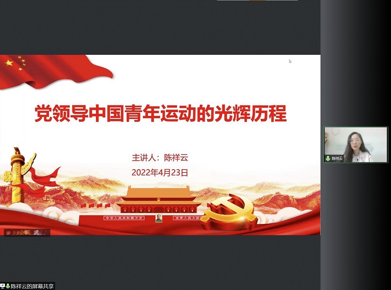 4月23日,565net必赢客户端第63期入党积极分子培训班于线上开展“党领导中国青年运动的光辉历程”主题党课。本次党课由院团委书记陈祥云主讲,第63期入党积极分子培训班全体成员参与。