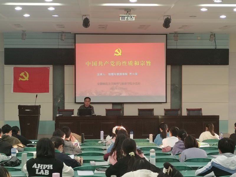 11月6日下午,地理科学专业本科生第一党支部书记齐小学为入党积极分子培训班做了题为《中国共产党的性质和宗旨》的专题讲座。他首先引导学员们思考“中国共产党是什么样的政党,中国共产党要干什么?”齐小学从中国共产党的诞生、全心全意为人民服务、坚定理想信念三个方面进行详细解读,用真实的事例向学员们讲解党史和理论知识。齐小学同时强调,要牢记中国共产党“要干什么”这一根本问题,归结起来就是要实现中华民族伟大复兴。