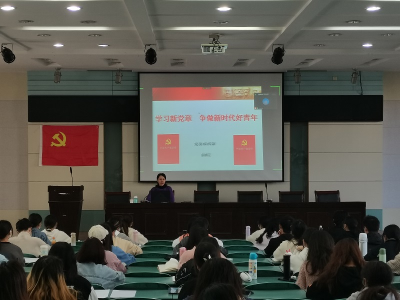 11月6日上午,校党委组织部副部长余妍霞应邀为培训班学员带来《学习新党章 争做新时代好青年》的专题培训,她从中国共产党人践行党章的初心和使命、党章的历史沿革和主要内容、二十大党章修改的主要内容以及二十大修改党章的重要意义四个方面为学员们做了全面深入的讲解,帮助参训学员进一步加深了对党的认识。