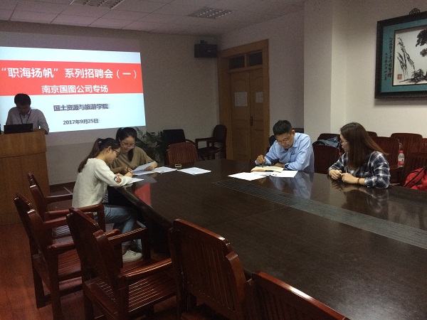9月25日晚,必赢举办"职海扬帆"系列招聘之南京国图专场招聘会。地理信息科学和土地资源管理专业毕业班四十余名学生参加招聘。招聘会于晚上6点半开始,分宣讲与面试两个环节。宣讲内容为介绍企业文化、发展,详细说明了所招聘的各个岗位的工作职责、工作环境条件和工作的主要内容。宣讲结束后,应聘的同学根据自身情况选择意向岗位,投递个人简历参加面试。整个面试有条不紊地进行。