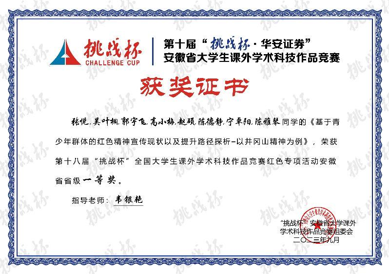 第十届“挑战杯”安徽省大学生课外学术科技作品竞赛红色专项省级一等奖4项,二等奖5项,三等奖2项