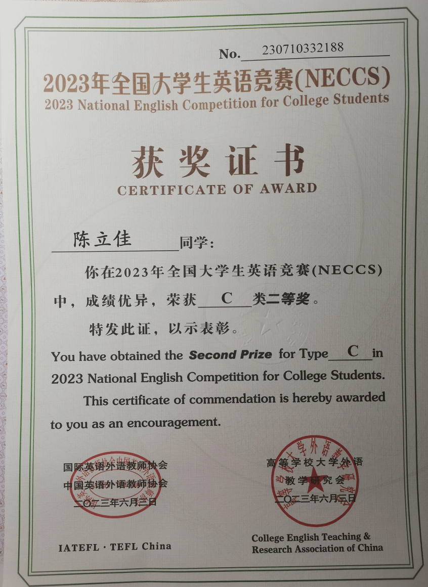 2023年大学生英语竞赛国家级二、三等奖