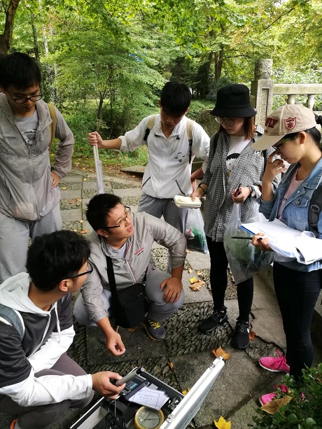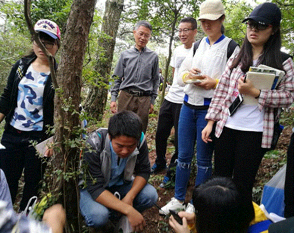在庐山为期11天的实习中,全体学生在指导教师组的带领下,踏朝阳前行携晚霞而归、风雨兼程,用双脚丈量庐山漫漫长路,用双手感受庐山一草一木,用眼睛观察庐山蜿蜒起伏,用仪器测量庐山灵秀水土。植物地理学教师孙叶根在实习过程中指导学生辨认植物,仔细观察每种植物的性状和特征,庐山植被的古往今来;地质地貌课程苗雨青、吴立两位老师指导学生们由眼前的山川河谷穿越历史回到漫长岁月之前,笑看地球的演变,谈笑中领略大地变幻;土壤地理学教师张平究、房莉指导学生识别土壤类型和观察土壤剖面;土壤动物课程教师朱永恒指导学生辨认土壤动物和分析土壤动物分布特点,探究地下的生物;气象与河流湖泊专业教师孙鹏结合庐山的实际解释湖泊的形成原因、水文特征以及气象特征……在每一处观测点,学生们都紧紧围绕在指导教师身边,专心听讲,认真记录,每晚实习小组成员都会总结一天的收获与感悟。