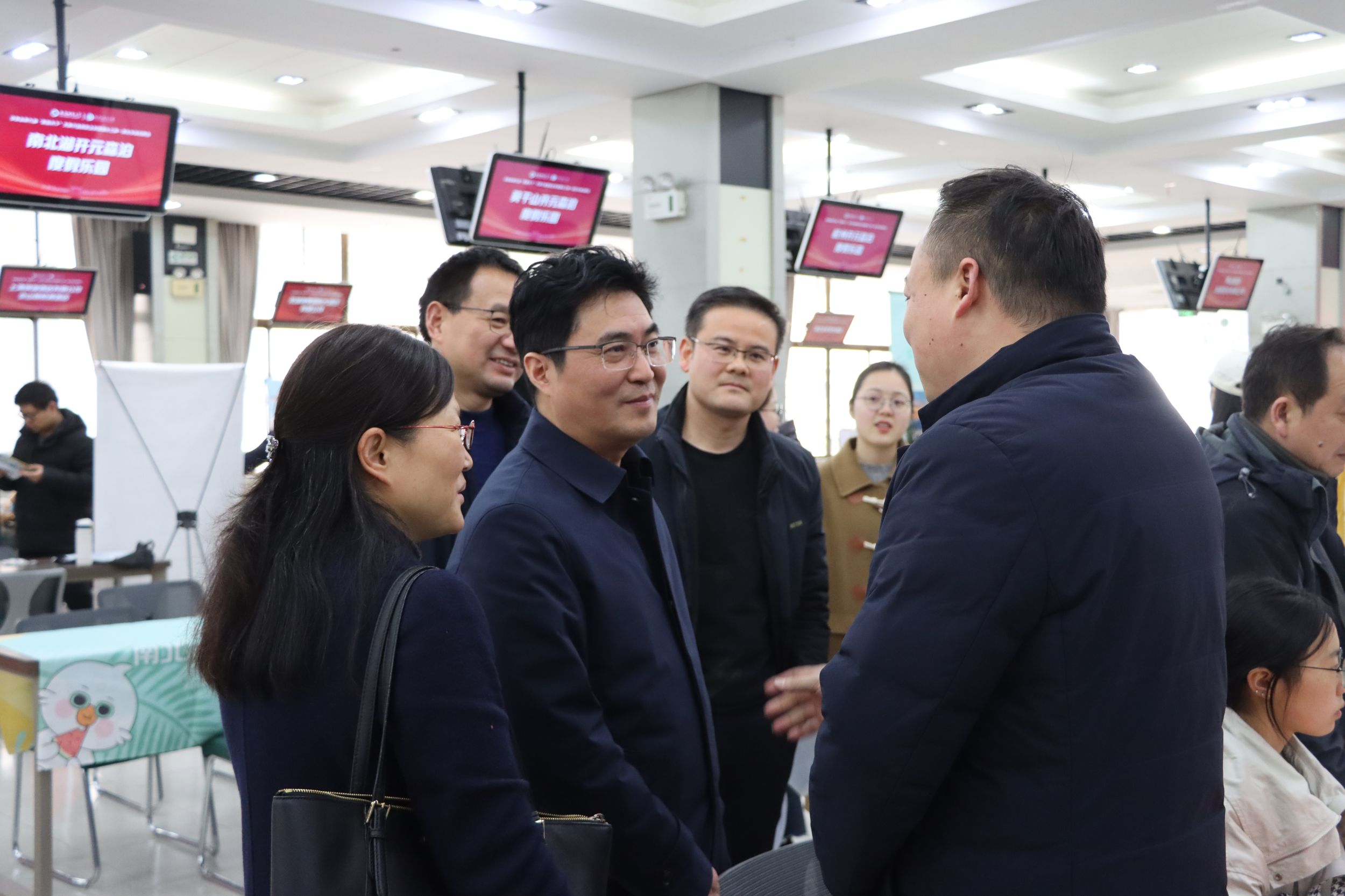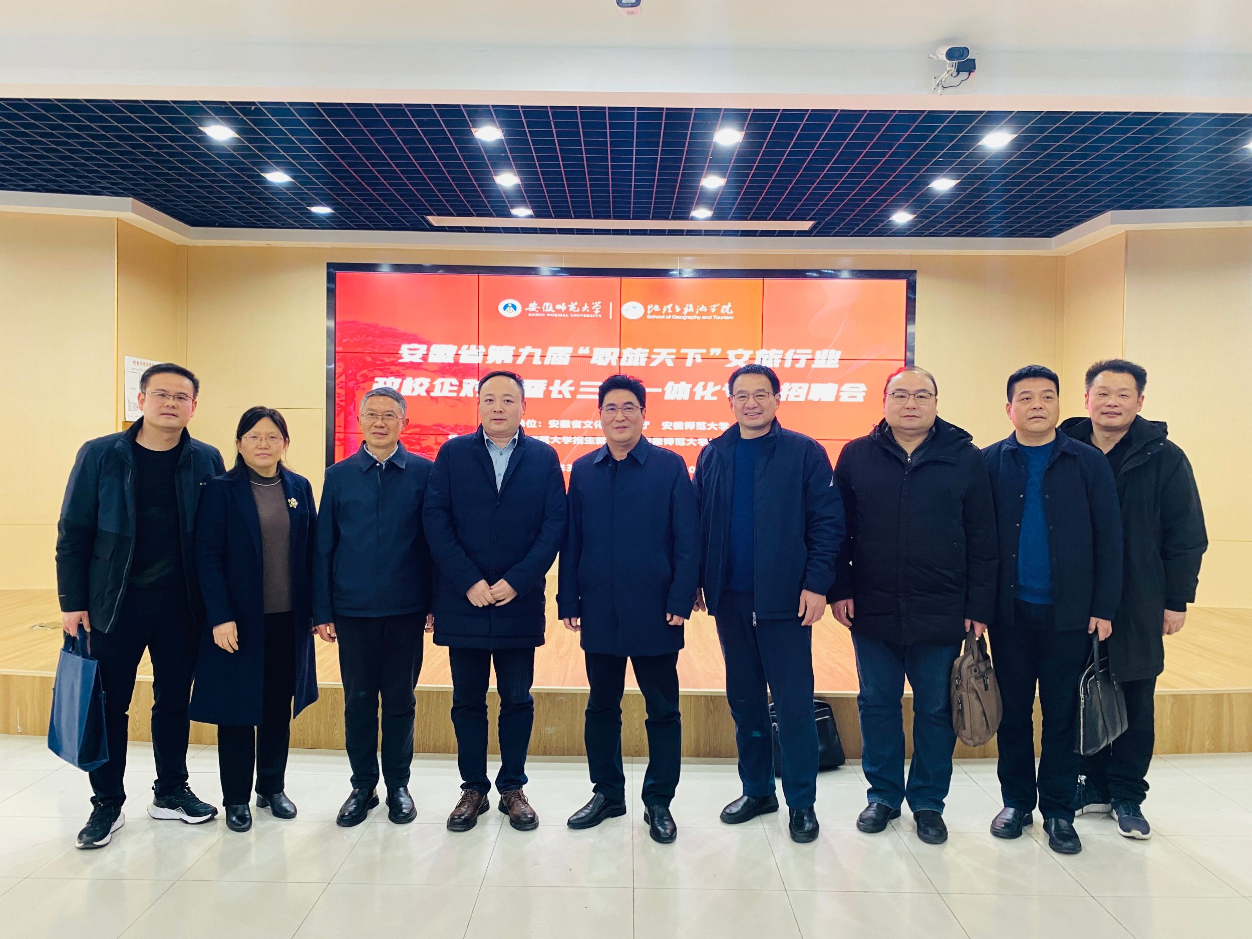 3月6日,校党委常委、副校长高峰带领招生就业处处长聂全高、副处长刘振杰深入安徽省第九届“职旅天下”文旅行业政校企对接暨长三角一体化专场招聘会现场指导就业工作,565net必赢客户端全体党政领导班子成员和专业负责人陪同。