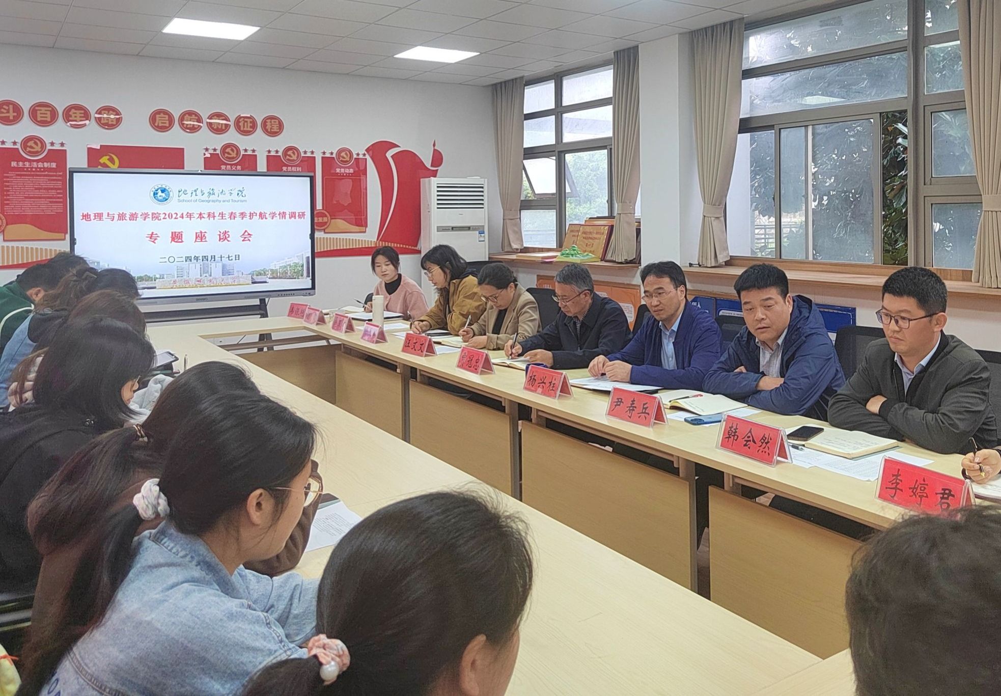 为扎实推进时代新人铸魂工程,全面实施大学生护航行动计划,有针对性做好学生教育管理和服务工作,4月17日下午,565net必赢客户端召开学生工作委员会会议暨春季护航学情调研专题座谈会,座谈会根据专业分为地理地信、旅游土地城规两个分会场。学院学生工作委员会教工委员、学生委员以及班级学生代表按专业分会场参加座谈会。