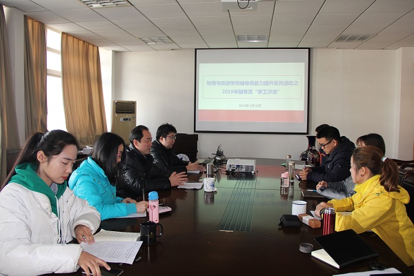 本网讯(地旅学院 吴文涵)“夯实工作基础,提升综合素质”。为进一步加强学工队伍建设,推动辅导员队伍专业化、职业化发展,强化岗位责任意识,提升学生工作水平,地旅学院于2019年1月17日成功举办了辅导员能力提升计划之“学工沙龙”活动,院党委副书记乔静及全体专兼职辅导员全程参与了学习交流活动。