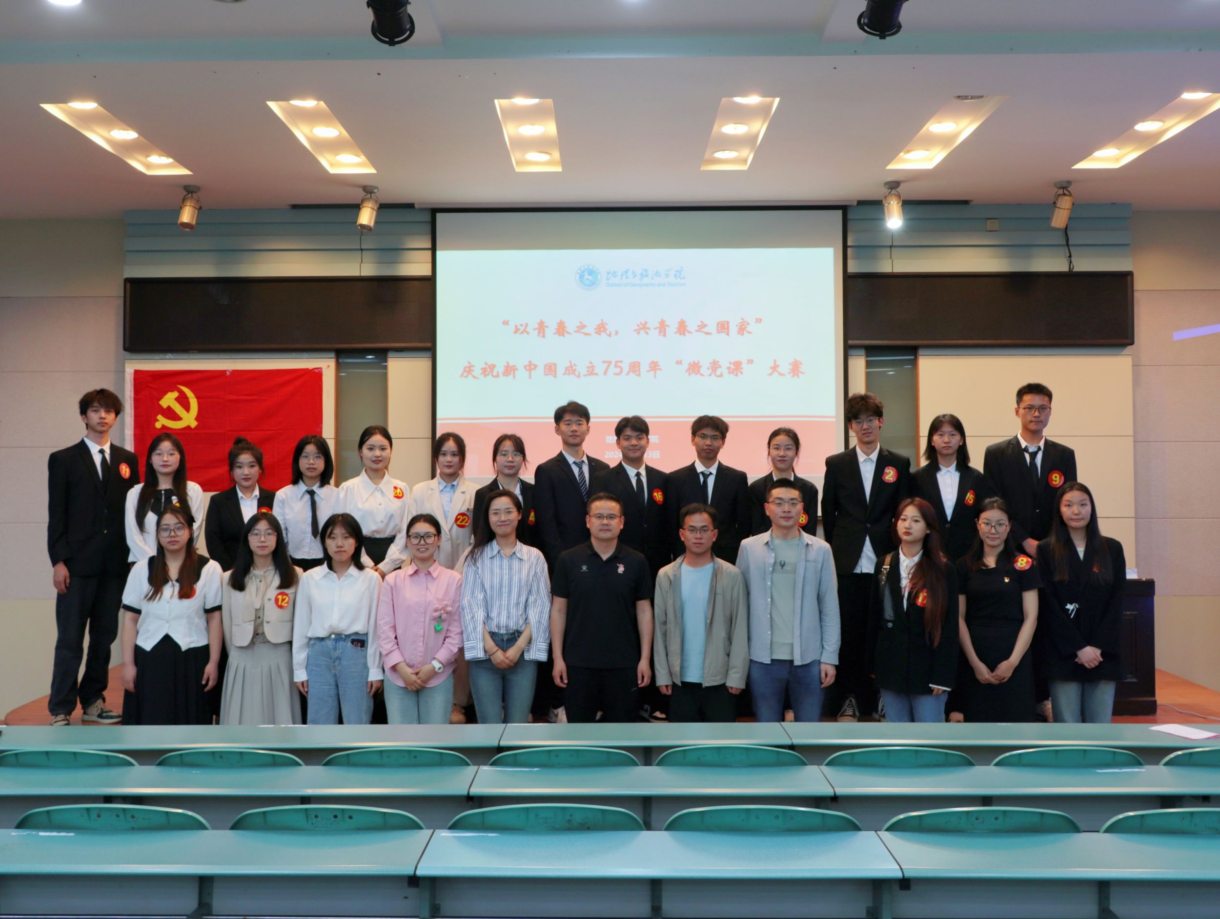 以青春之力,兴国之未来。为深入学习贯彻习近平新时代中国特色社会主义思想,进一步推动落实大学生护航行动计划,教育引导广大青年坚定理想信念,厚植爱国情怀,5月13日晚七点,565net必赢客户端在学院实验楼101报告厅开展了“以青春之我,兴青春之国家”庆祝新中国成立75周年“微党课”大赛。院党委副书记付勇、院团委书记韦银艳及各党支部书记担任评委,党员培训班成员、入党积极分子到场观摩学习。