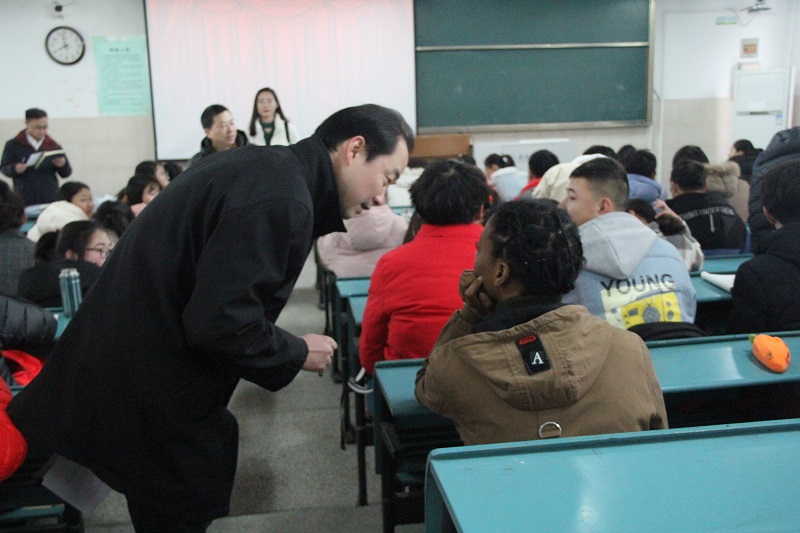院党委书记贾冠忠、院长苏勤、党委副书记乔静、副院长曹卫东、方凤满、赵冬梅等学院领导、专业负责人、辅导员走进教室,深入教学一线。认真检查了授课老师的到岗情况、学生的到课出勤以及教学设备的运行状况。乔静还走进2018级旅游管理专业课堂与留学生亲切交谈,关心学生的学习、生活情况。