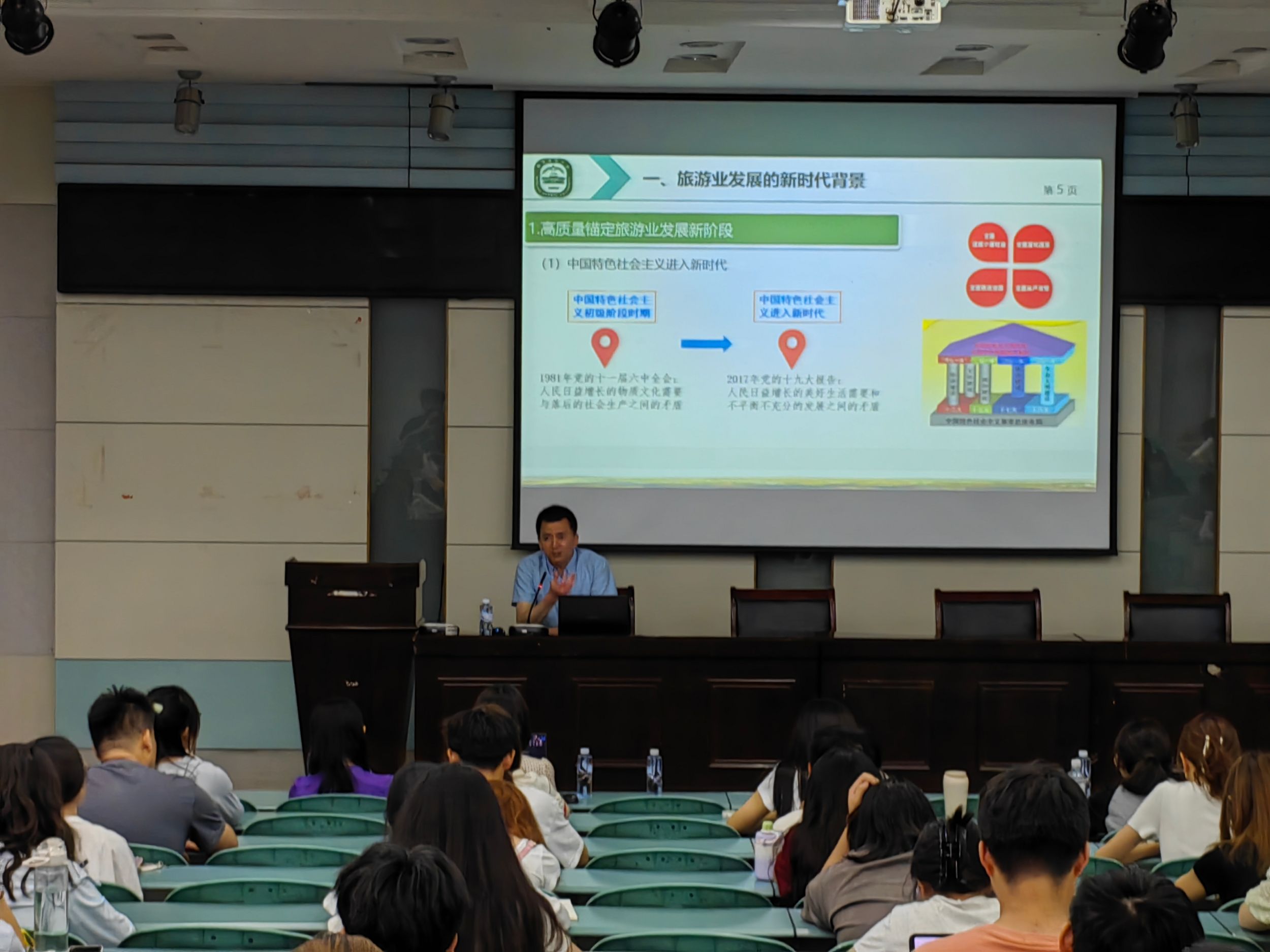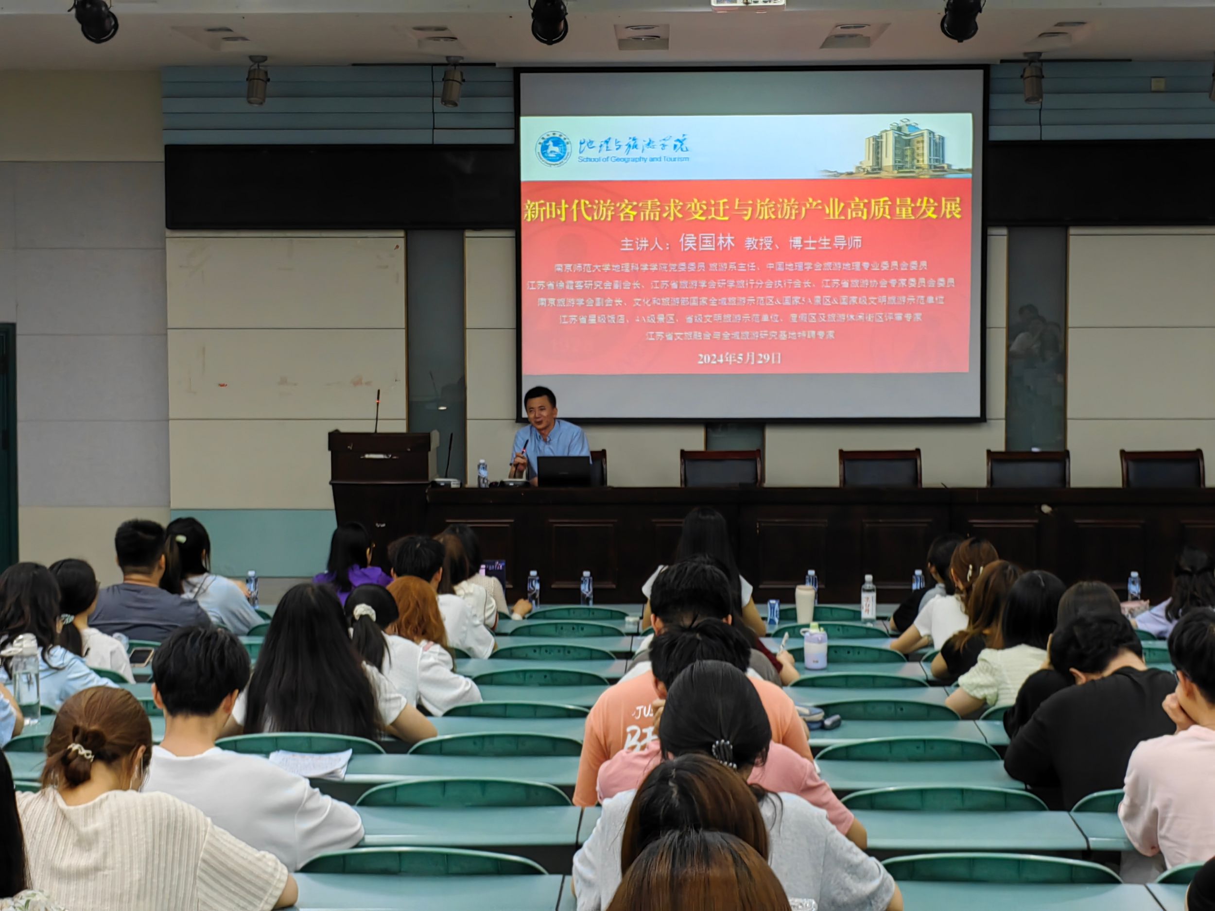 中国地理学会旅游地理专业委员会委员,江苏省徐霞客研究会副会长,江苏省旅游学会研学旅行分会执行会长,南京师范大学地理科学学院党委委员、旅游系主任侯国林教授应邀为565net必赢客户端学子作题为《新时代游客需求变迁与旅游产业高质量发展》专题讲座,旅游管理专业教师王咏、王莉,辅导员齐小学,2023级旅游管理专业本科生和部分研究生参加。专题讲座由旅游管理专业教师杨效忠教授主持。