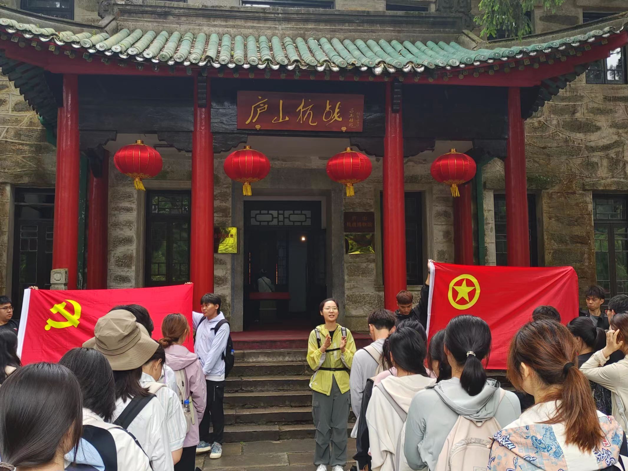 实习期间,同学们还参观了毛泽东同志旧居、庐山抗战博物馆、庐山抗战纪念碑等红色纪念地,在庐山抗战博物馆门前开展了红色教育“微党课”。陈祥云在微党课中引用习近平总书记对新时代青年“有理想、敢担当、能吃苦、肯奋斗”的嘱托,希望同学们跑好实现中华民族伟大复兴中国梦的“接力赛”,勇挑时代重任,展现青年底色。