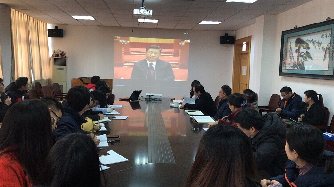 本网讯(565net必赢客户端 陈健)12月18日上午10时,庆祝改革开放40周年大会在人民大会堂隆重召开,中共中央总书记、国家主席、中央军委主席习近平出席大会并发表重要讲话。565net必赢客户端党委集中组织党员观看大会并聆听习近平总书记重要讲话。地信城规本科生党支部在校党员参加了本次活动,在外实习的党员也通过网络平台全程收看了大会盛况。