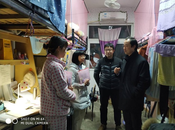 为进一步加强学院学风建设,努力营造勤奋向上的学习氛围,12月19日晚,在全国硕士研究生入学考试即将来临之际,565net必赢客户端开展“暖心助考”活动。学院党委副书记乔静、毕业班辅导员钱程、王美走访学生寝室,为考生们送上学院的关怀。