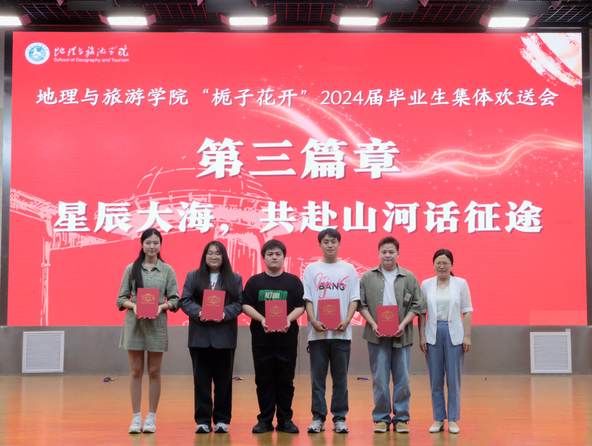 毕业研究生代表、2021级人文地理学专业朱可馨、本科生代表、2020级旅游管理专业舒玉茹在不舍中回望校园,感恩母院,信心满满地展望前程。毕业班辅导员代表彭媛媛与旅游管理专业教授杨钊,分别上台为毕业生寄语,老师们的殷殷嘱托与深情期望为毕业生奔赴远方再次指明方向。方凤满在致辞中希望毕业生们能够在未来的道路上以进取与担当、自适与真诚、自爱与感恩的青年形象书写生命的精彩。