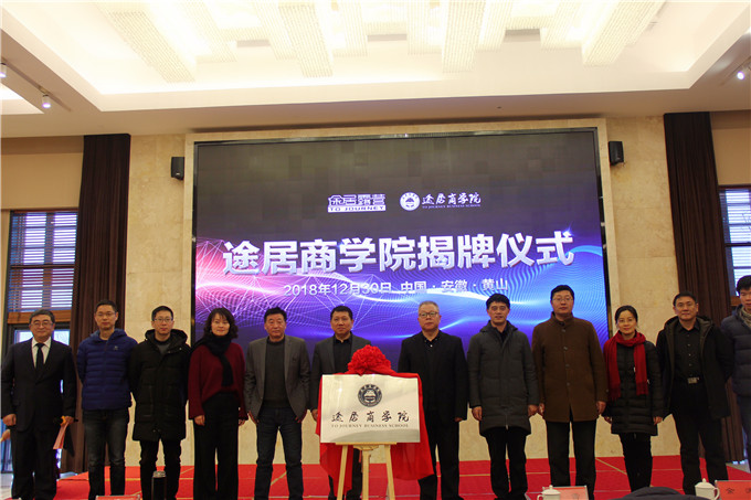 途居露营地投资管理股份有限公司董事长兼总经理管雷,北京华安联合认证检测中心主任刘海鹏,安徽师范大学体育学院院长金涛,黄山学院旅游学院院长朱国兴,安徽师范大学565net必赢客户端旅游管理专业负责人杨效忠、副主任王咏,途居露营地投资管理股份有限公司副总经理潘光明,奇瑞大学高级经理程婷婷等出席了揭牌仪式。