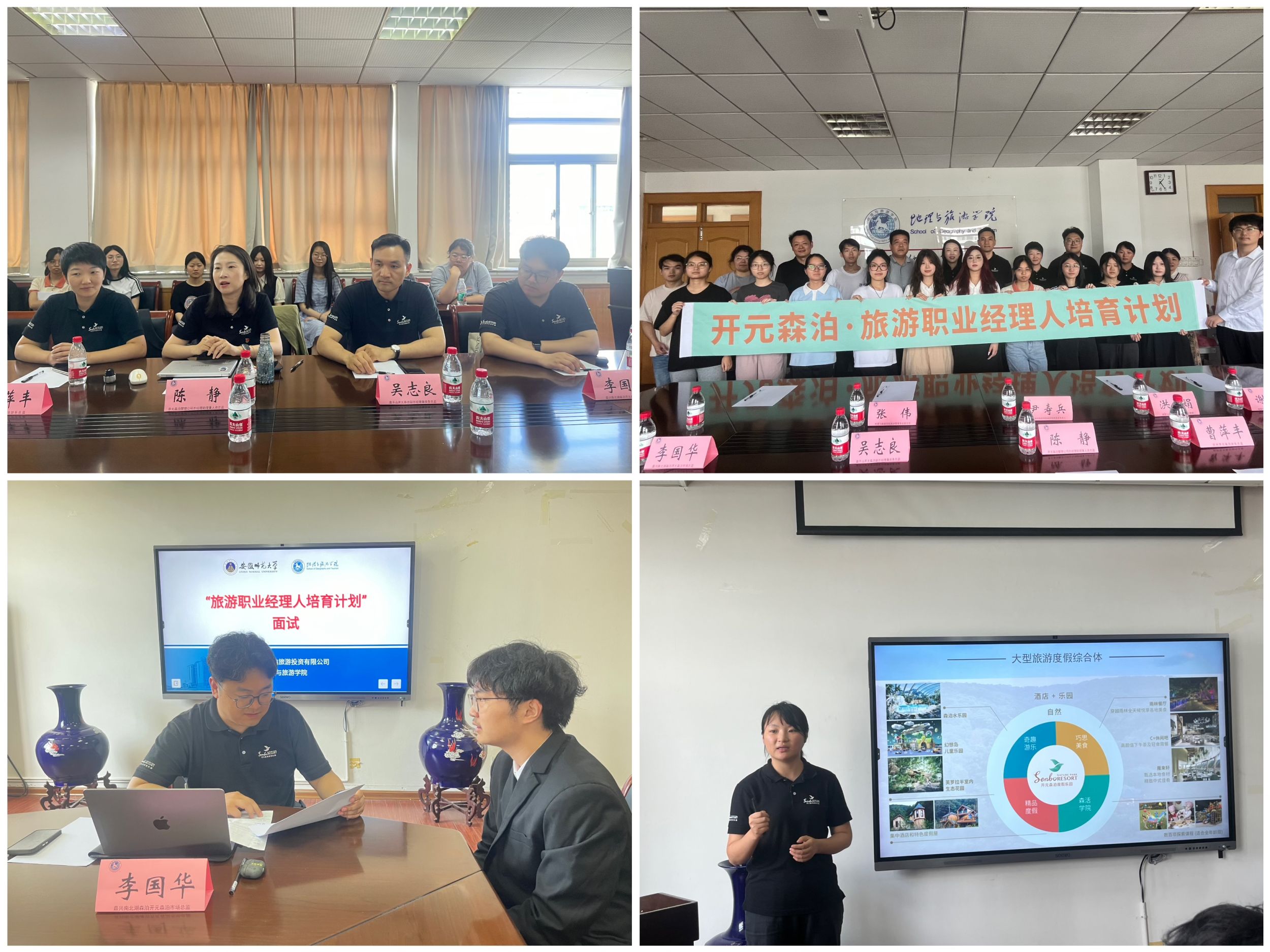说得千里路,不如行一步。旅游管理专业统一认识后,迅速落实到人,立即着手开展工作。6月20日下午,联合开元森泊管理公司实施第二届“旅游职业经理人培育计划”人才招募面试。经过筛选,最终11位学生加入“旅游职业经理人培育计划”,入选的学生将在企业高管和专业老师组成的团队指导下完成实践课题,表现优秀者将优先进入森泊“新森代”通道,以管培生身份正式入职。