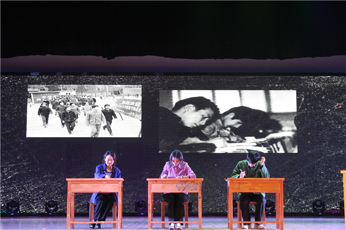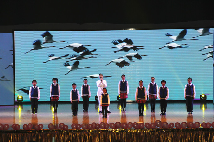 智斗》中,表演者们粉墨登场,唱念做打间国粹的魅力尽显,余音绕梁,韵味悠长;小品《归雁》以学院赴川支教十年的志愿队伍川队为原型,以山区教学现状为背景,根据真实故事改编,讲述山区支教点滴,倾诉十年志愿真情,感动了现场观众,而故事原型川队首批志愿者王娟、“归雁反哺”的李媛媛也发来信件与视频,表达对川队十周年的深切祝福、对大家新一年的美好祝愿;歌曲《少年中国说》中,学院十位教职工子女们动情朗诵,激昂伴唱。李雨林豪迈领唱,携中华少年们阐发少年声音、诠释少年责任。