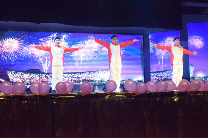 芳菲岁月,荏苒如歌,旧梦今宵,使命不渝。礼仪秀《记忆中的四十年》展示改革开放四十年岁月变迁,校礼仪队和全体辅导员通过情景再现的方式,将观众带入改革开放的时间之旅,重温四十年来人民群众在党中央领导下追寻美好生活的历史记忆;新疆舞《新疆吆喝》充满民族风情,洋溢节日氛围,来自新疆的巴郎子和古丽们载歌载舞,展现团结、好客、繁荣、向上的大美新疆;同唱梨园欢歌,共迎万家祥和,京剧联唱《穆桂英挂帅(选段)》《三家店(选段)》《沙家浜