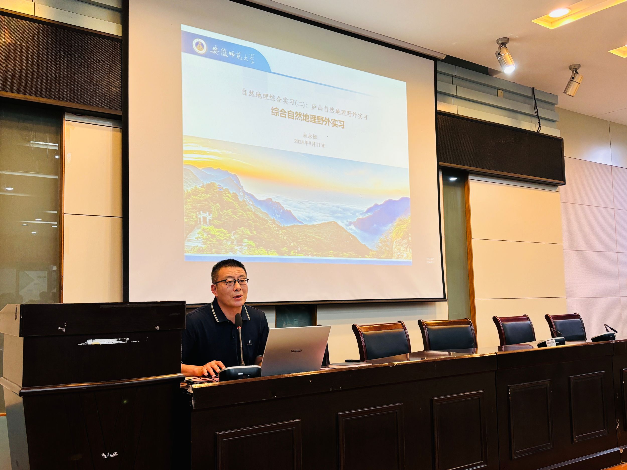 在2022级地理科学专业的庐山地区自然地理综合实习培训会上,朱永恒向同学们具体介绍庐山实习的路线和实地情况;胡春生就本次实习安排与注意事项做详细介绍,提醒同学们要从思想和行动上做好充分准备;吴立向同学们介绍庐山实习过程中的地质地貌等内容。