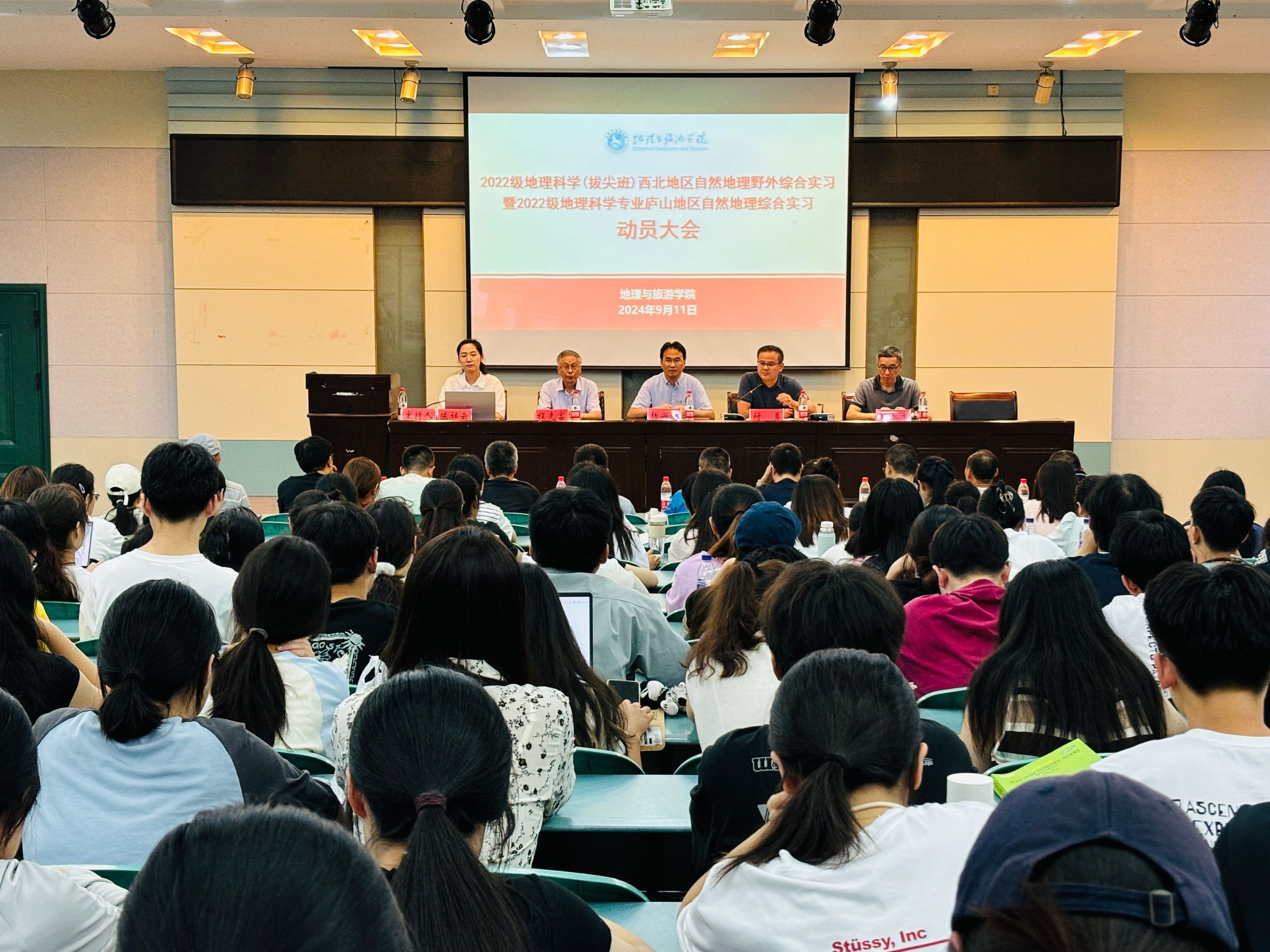 9月11日下午,565net必赢客户端在实验楼101报告厅召开2022级地理科学(拔尖班)西北地区自然地理野外综合实习暨2022级地理科学专业庐山地区自然地理综合实习动员会,学院党委副书记付勇、副院长杨兴柱、地理科学专业负责人朱永恒、西北实习负责人程先富、庐山实习负责人胡春生,全体实习指导老师,以及2022级地理科学(拔尖班)、2022级地理科学(师范)专业全体学生参会,会议由辅导员陈祥云主持。