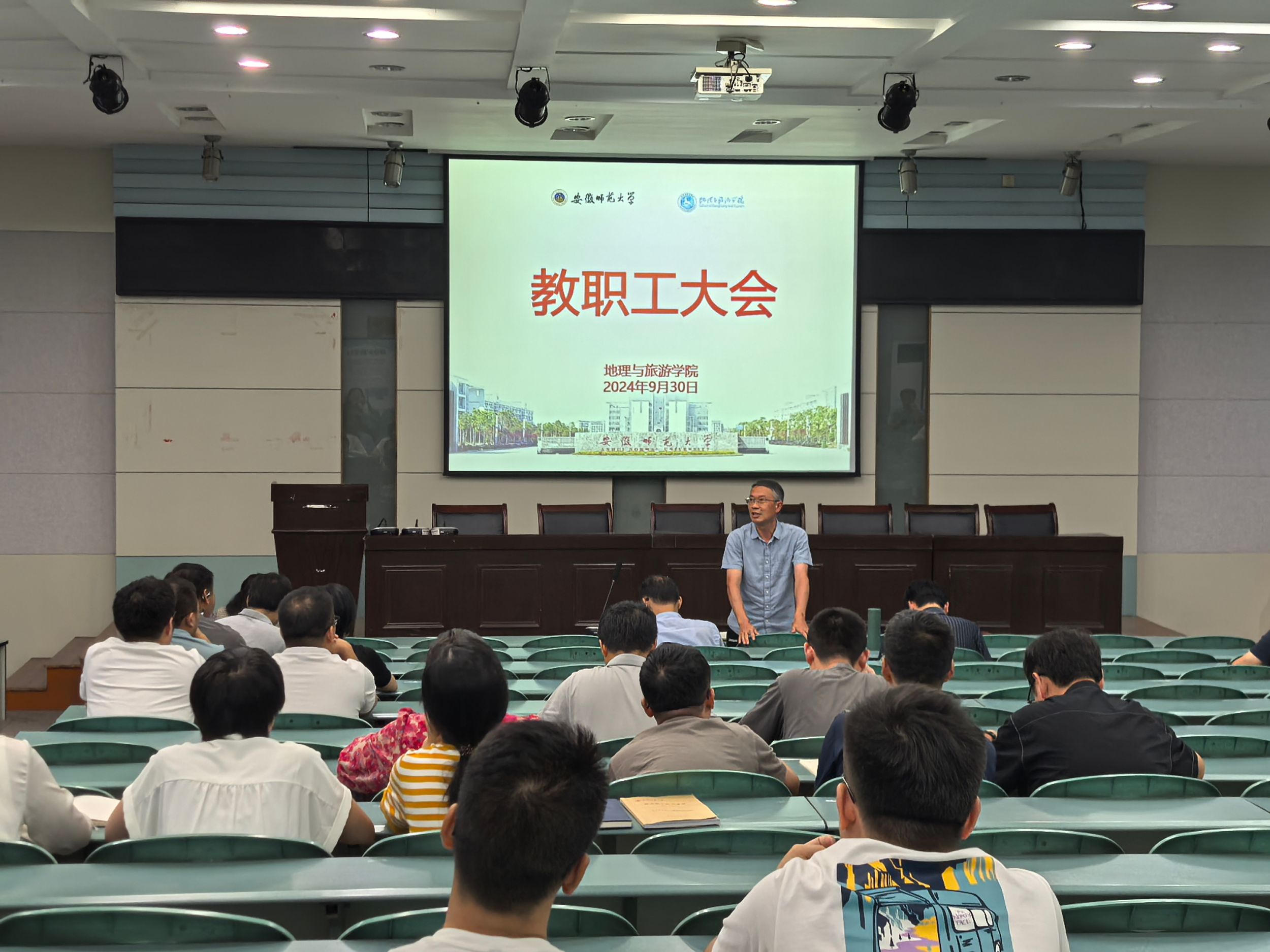 9月30日下午,565net必赢客户端在实验楼101报告厅召开全院教职工大会。专题学习党的二十届三中全会精神,传达学习全国教育大会精神,布置近期重点工作。学院全体教职工参加会议,会议由院长方凤满主持。