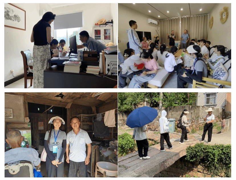 各团队根据团队调研需求对元四中心村与村域范围展开深入调研,采用领导座谈、拜访学者、发放问卷、入户访谈等多种形式深入剖析基地现状,了解产业发展情况,探访章氏文化的传承机制,探寻元四村的振兴密码。