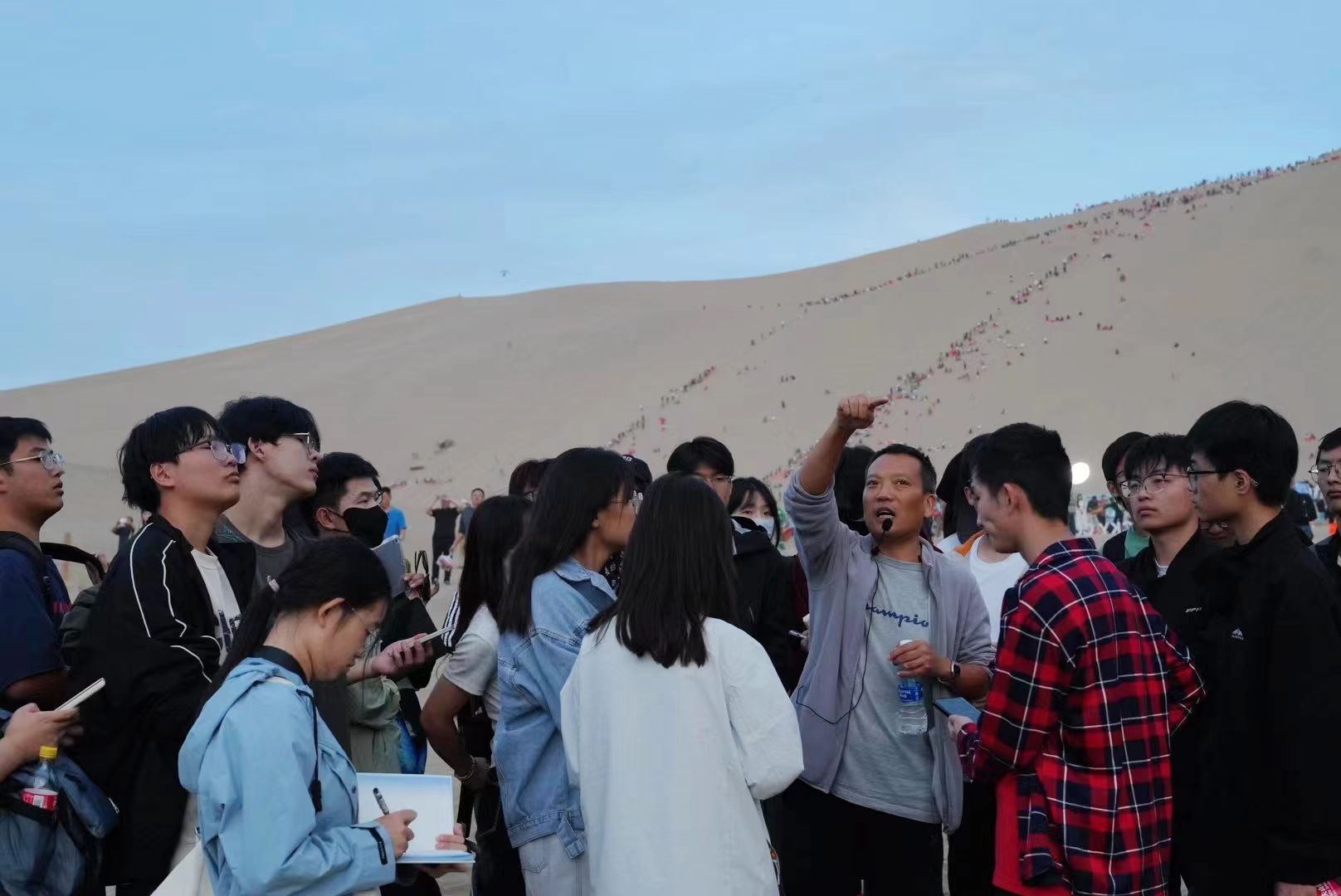 实习期间多次开展“行走的思政课”。在途径古丝绸之路时,程先富为同学们讲解了许多当地风土人情、人文故事。同学们耳濡目染,更加坚定了民族团结和各民族共同繁荣的道路,深刻理解了习近平总书记关于“推进中华民族共同体建设,巩固发展中华民族大团结”的重要讲话精神,增强了同学们的民族凝聚力。是一堂生动的课程思政教育。