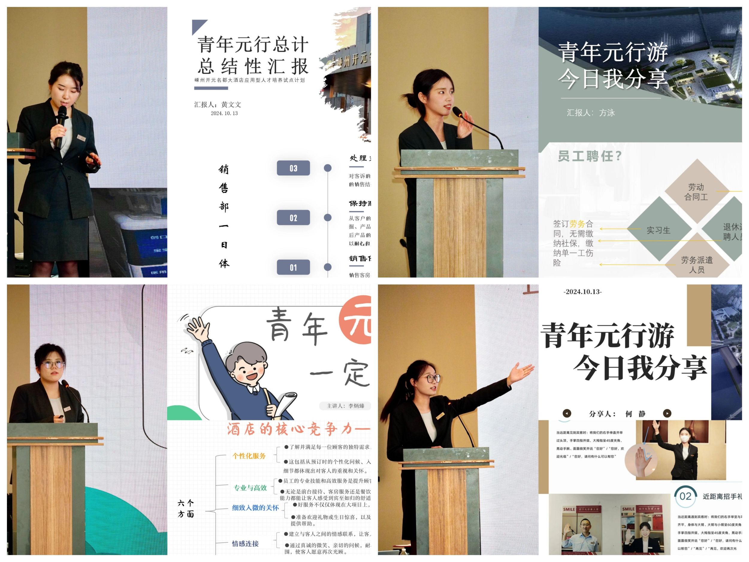 为促进2025届毕业生就业工作,565net必赢客户端与嵊州开元名都大酒店合作探索促进毕业班职业体验和和能力提升举措,经过前期的座谈交流和系统谋划,10月10-13日,学院5名毕业生代表在嵊州开元名都大酒店参加“开始吧,青年元行”人才培养创新实践,在企业高管的带教下,同学们以宾客视角、员工视角、管理视角开展一系列体验活动,并结合专业提出对岗位的思考感悟。期间,学院党委副书记付勇、旅游管理专业负责人尹寿兵、毕业班辅导员韦银艳一同前往嵊州关心慰问实践学生。
