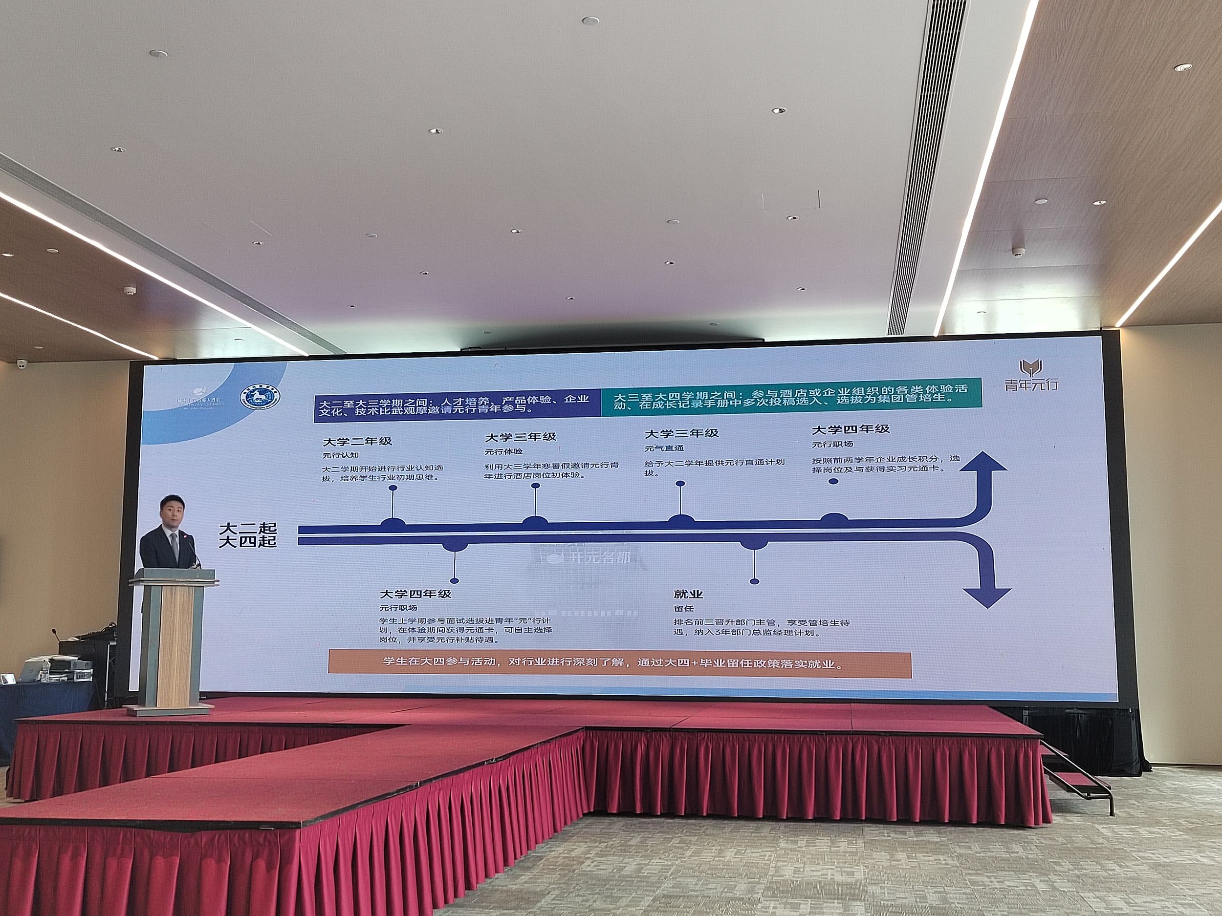 行程迎来尾声,根据计划安排,同学们将针对几天的所感所悟所获开展分享,企业对优秀元行青年给予结业表彰。嵊州开元名都大酒店总经理吕刚及中层管理团队、学院党委副书记付勇、旅游管理专业负责人尹寿兵、辅导员韦银艳共同参加,聆听同学们精彩的汇报。五位同学分别从用户体验视角、员工体验视角、结合个人感悟分享对岗位的认知和相关意见建议,纷纷表示收获满满,对后续胜任岗位要求更有信心。