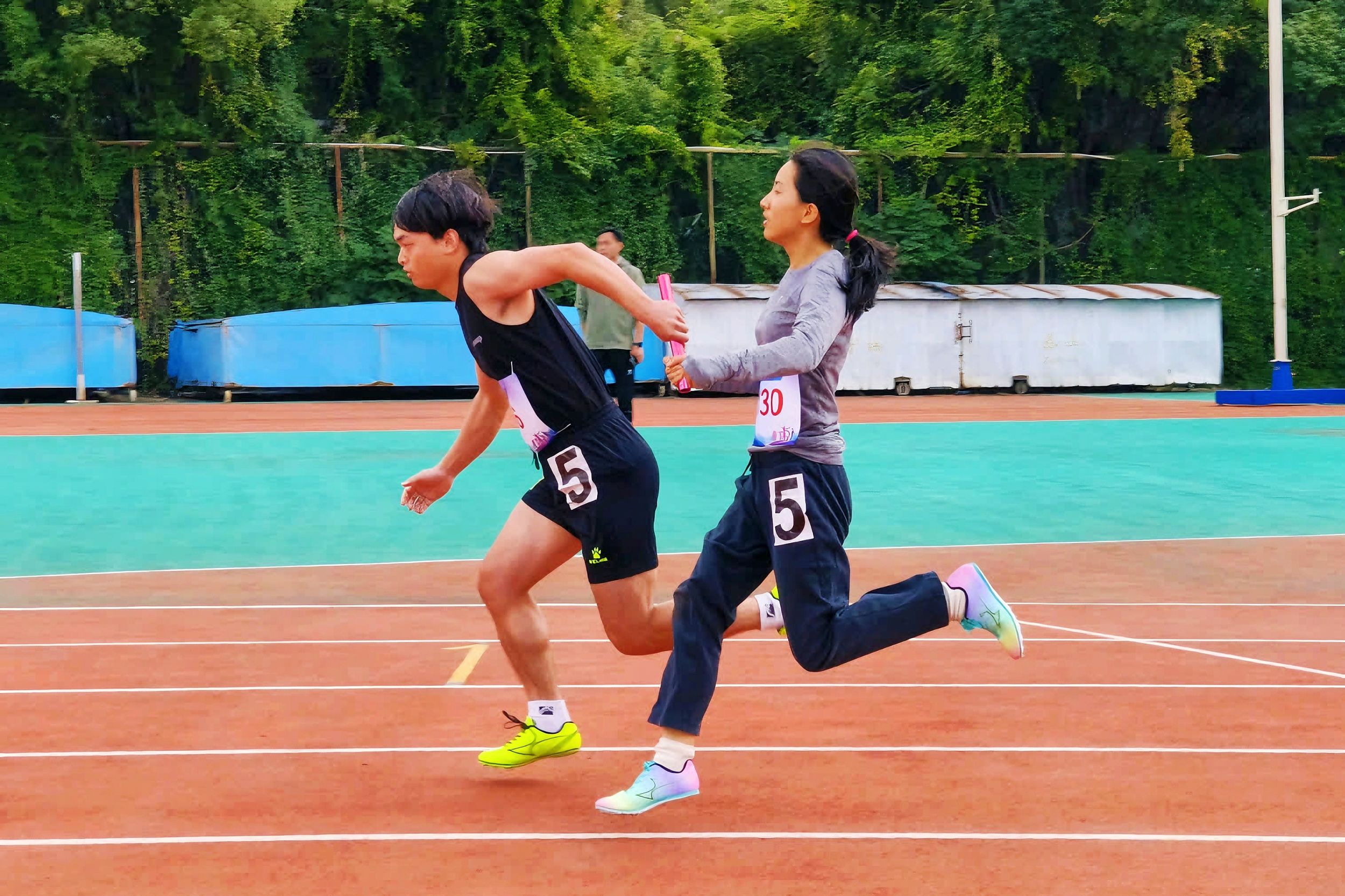 在个人角逐之中,方显唯凭借顽强的毅力和敏捷的速度,在男子100米决赛中勇夺季军。肖姚靳在男子1500米和5000米两个耐力项目中,以坚定不移的斗志和强大的爆发力连夺双冠,成为此次赛事中最耀眼的选手之一。在投掷项目中,穆太力普·巴斯提凭借强劲的臂力和卓越的精准度,在男子标枪比赛中夺冠。此外,他在男子铁饼决赛中也不负众望,勇夺季军,全面展现了在投掷项目上的非凡实力。在男子400米的激烈竞争中,许浩扬一举摘得桂冠,展现出运动员无畏的拼搏姿态。与此同时,卢庆宫在男子跳远决赛中获得亚军。女子项目中,在女子5000米项目中,王园园和钱丽的精彩表现成为女子长跑赛场上的亮点。王园园以坚定的毅力和出色的体力获得第三名,而钱丽则凭借持久的耐力和顽强意志获得第五名。在男子丙组中,教师余健在铅球决赛中展现扎实功底,获得第四名。教师支俊俊则在男子1500米决赛中取得第五名,两人用实力和拼搏精神为团队增添荣誉。而在团体赛当中,学院学子的表现亦可圈可点,分别取得了女子甲组4*400m决赛冠军、男子甲组4*400m决赛亚军以及混合甲组4*100m接力亚军等优异成绩。赛场上的他们,如骏马奔腾,似蛟龙出海。速度与力量的完美结合,展现出拼搏的魅力。