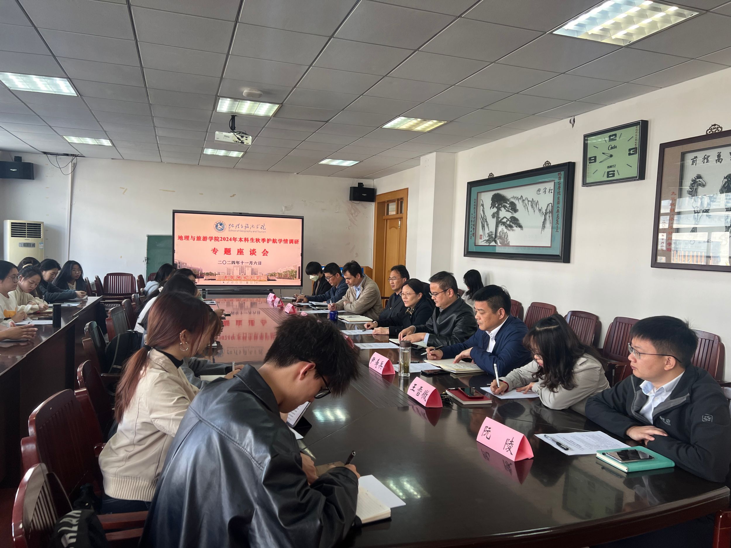 为扎实推进时代新人铸魂工程,全面实施大学生护航行动计划,有针对性做好学生教育管理和服务工作,11月6日下午,565net必赢客户端在学院行政楼召开学生工作委员会,专题座谈调研2024年秋季本科生护航学情。座谈会根据专业分为地理地拔地信、旅游土地城规两个分会场,新一届学生工作委员会教工委员、学生委员以及各班级学生代表参加会议。