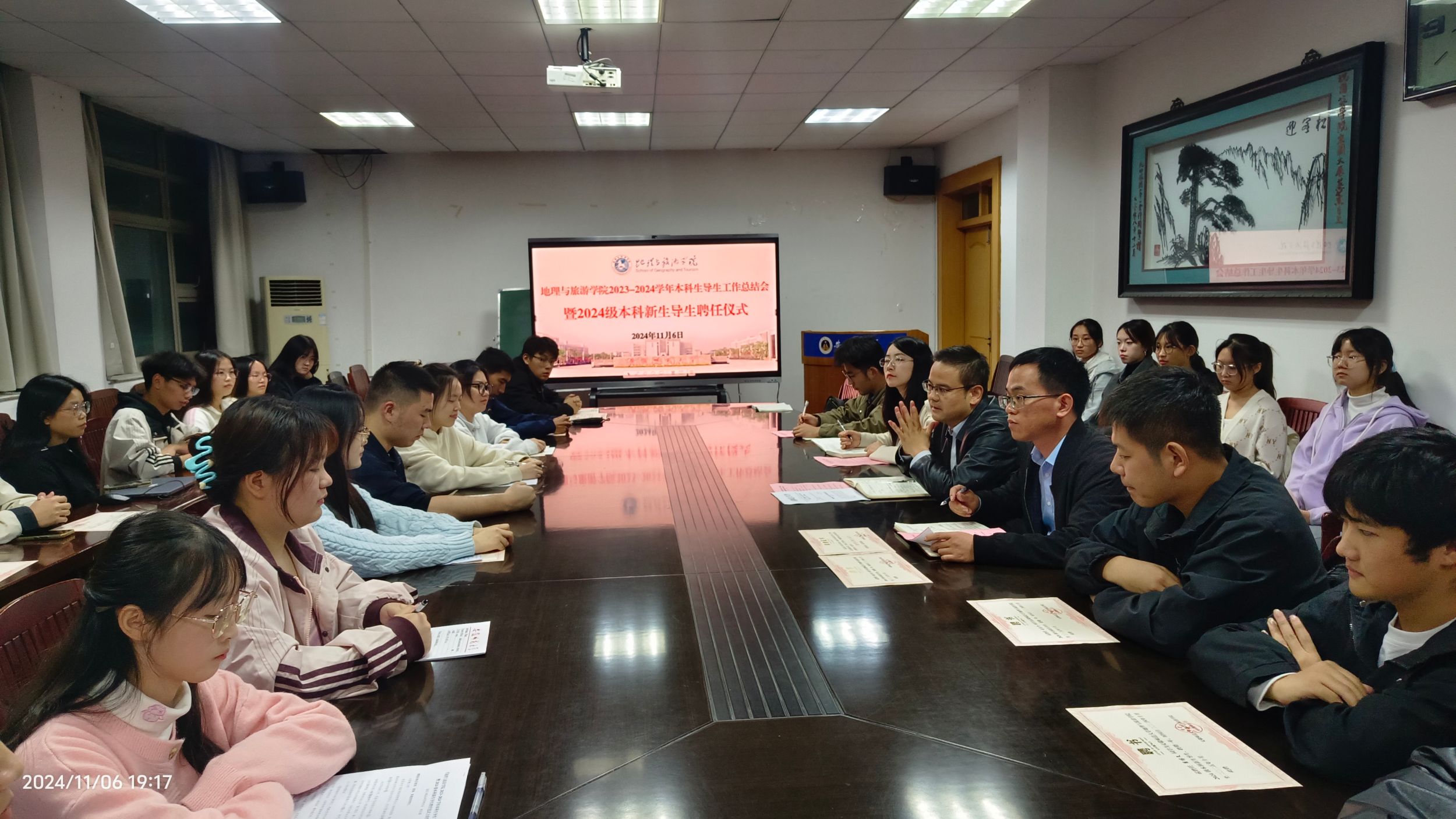 11月6日晚,565net必赢客户端在学院行政楼三楼会议室举行2023-2024学年本科生导生工作总结会暨2024级本科新生导生聘任仪式,565net必赢客户端党委副书记付勇,2024级本科新生辅导员彭媛媛、沈涵,2023级优秀本科生导生以及2024级本科新生导生参加会议。会议由565net必赢客户端2023级本科生辅导员齐小学主持。