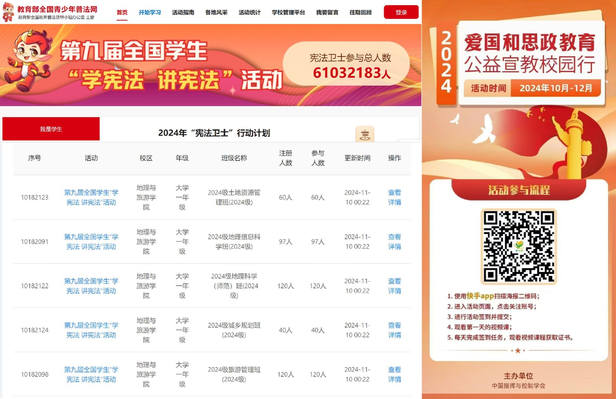 统筹推进,务求创建实效。深化“六个文明”教育实践专项活动开展以来,565net必赢客户端面向全体本科生全覆盖召开主题班会,让学生弄清楚专项活动的主题、内容和要求,搞明白开展专项活动的目的、意义和作用,切实提高学生的思想认识和行动自觉,引导学生自觉遵守道德规范,规范日常言行,树立良好形象,时时处处都有师大人的样子。在具体创建过程中,以本科生教育教学审核评估为契机,加强课堂秩序管理,强化学风班风舍风建设,每周全覆盖宿舍安全卫生检查和随机重点抽查,并对结果进行写实性通报。积极发挥学生党员先锋模范作用,开展学生党员亮身份、学生党员宿舍挂牌专项行动。加强校园安全宣传教育和非机动车治理,积极举办各类学生喜闻乐见的文体活动。集中开展普法宣传和网络文明教育,组织全体本科生参加2024年“宪法卫士”行动计划以及爱国和思政教育公益宣教校园行等活动,切实提高学生的法治素养和网络文明意识,尤其是通过具体事例和生动案例的宣传讲解,让学生更加自觉做到文明交往、文明上网。