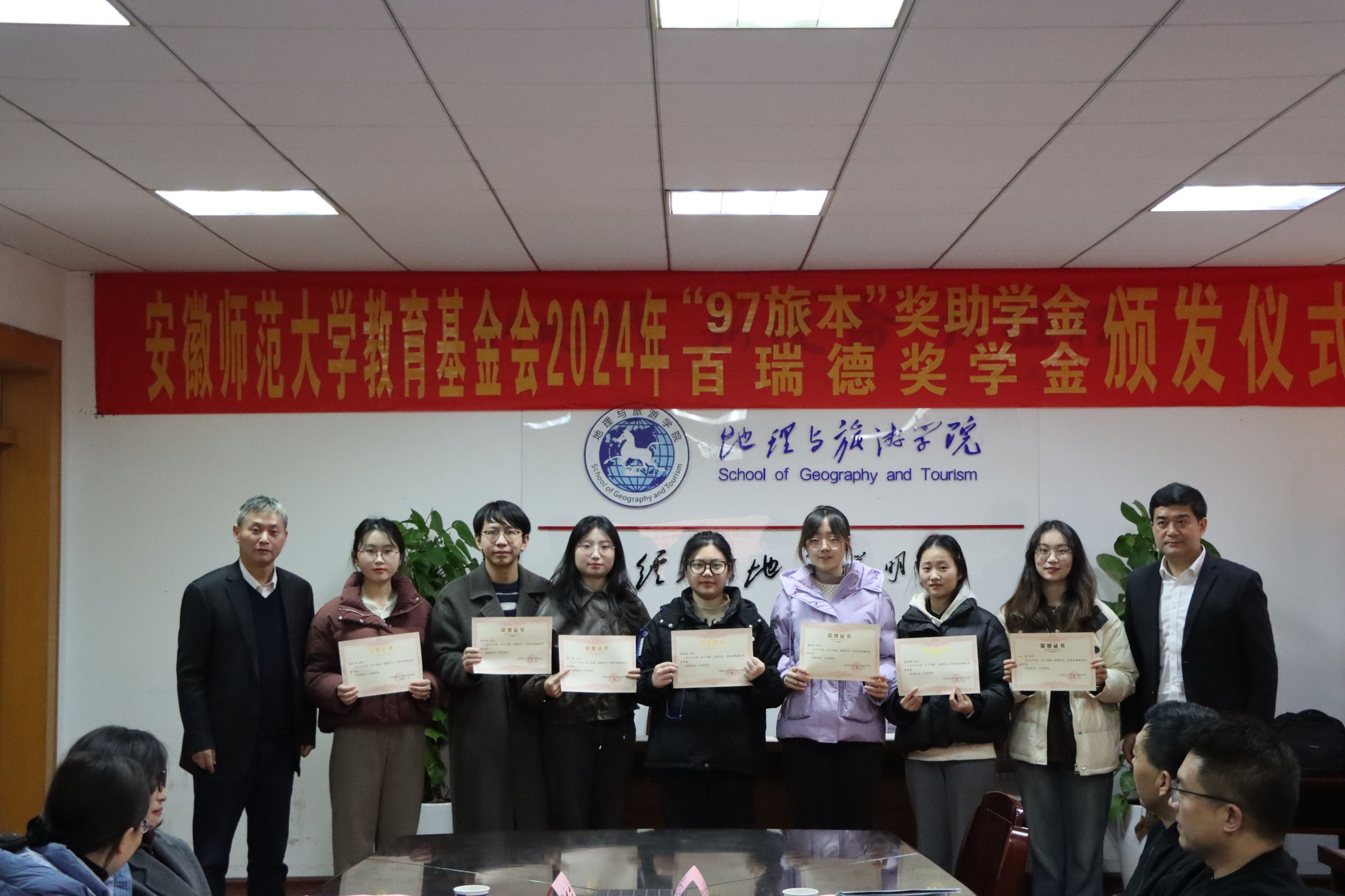 据悉,“97旅本”奖助学金是由我校1997级旅游管理专业本科班毕业生共同设立的,是我校班集体名义设立的本科生奖助学金之一。百瑞德奖学金则是由2002级旅游管理专业校友、宁波百瑞德光学仪器有限公司总经理程伟先生捐资设立,旨在专项奖励表现优异的学生骨干和积极参与社会实践的学生,成为师大首个专注于这一领域的奖学金项目。长期以来,565net必赢客户端始终将资助工作视为重中之重,积极搭建全方位资助体系。目前,学院设立了“雷忠平奖助学金”“明达奖助学金”“97 旅本奖助学金”“百瑞德奖助学金”“芜湖北大奖助学金”以及“松茂奖助学金”等 6 项院级社会奖助学金项目,每年资助总额高达 73 万元。