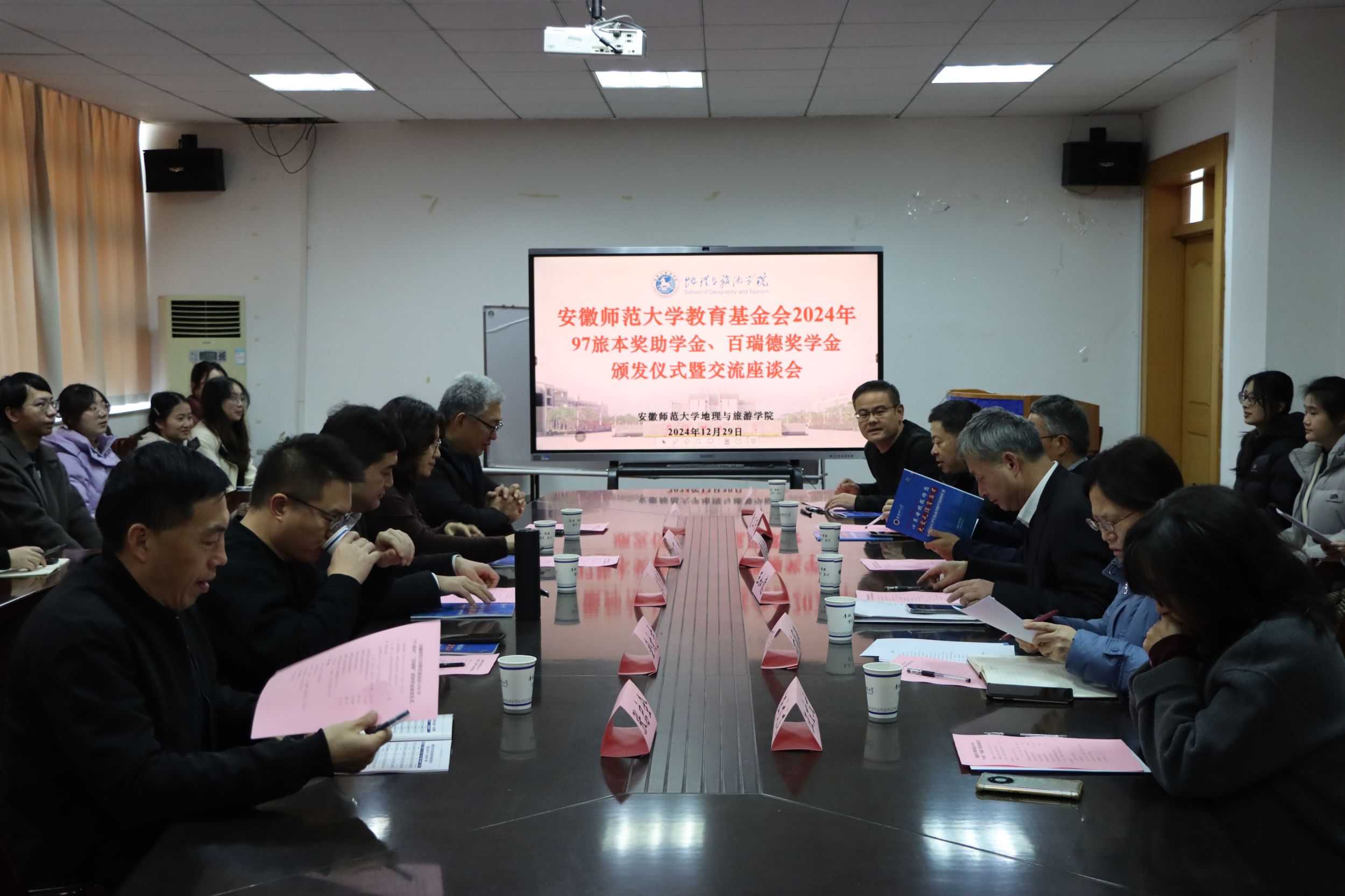 12月29日上午,校教育基金会2024年“97旅本”奖助学金、百瑞德奖学金颁发仪式暨座谈会在565net必赢客户端行政楼三楼会议室举行。资助方代表、我校校友丁娟、金太志、翟玉华、窦贤琨、张启全,校教育基金会副理事长兼秘书长王如意,学院党委领导班子全体成员,专兼职辅导员代表以及“97旅本”、百瑞德获奖受助学生代表出席本次活动。活动由学院党委副书记付勇主持。