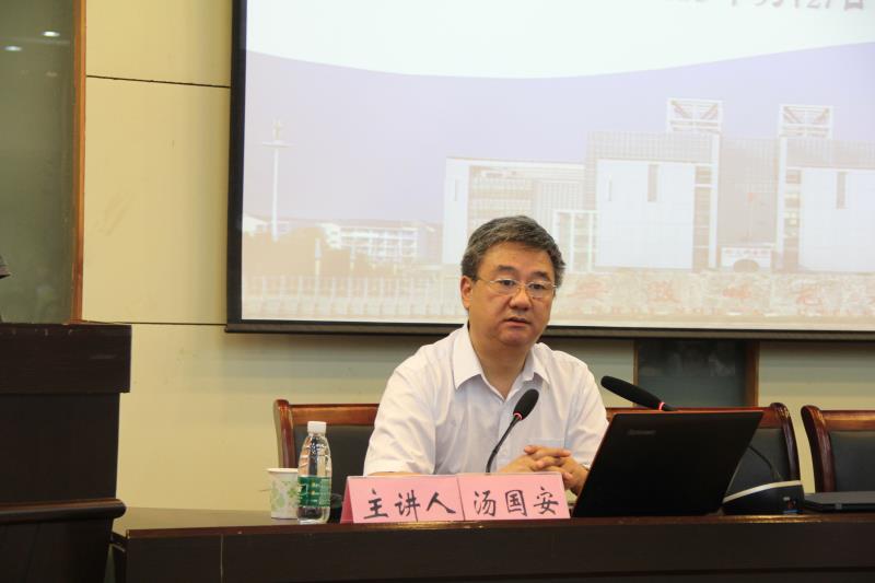 汤国安还运用丰富鲜明的例子讲述了地理学在地理国情监测、智慧城市建设、国防军事建设等方面的应用,使同学们了解地理学发展前景与就业方向。汤国安对同学们寄予厚望,并强调学好地理学不仅需要掌握地理学知识体系,还需要探索研究型的学习方法,培养探究思维、求证思维以及批判思维,更重要的是要有积极主动的学习态度和力争上游的奋斗精神。汤国安通过第十一届中国大学生年度人物于天星的例子进一步阐述了积极主动、努力的重要性,并以此激励同学们努力学习,他提出大学四年决定我们的一生,列出大一到大四同学们要完成的事情,勉励同学们应该以考研为学习的终极目标,珍惜大学时光,努力学习专业知识。