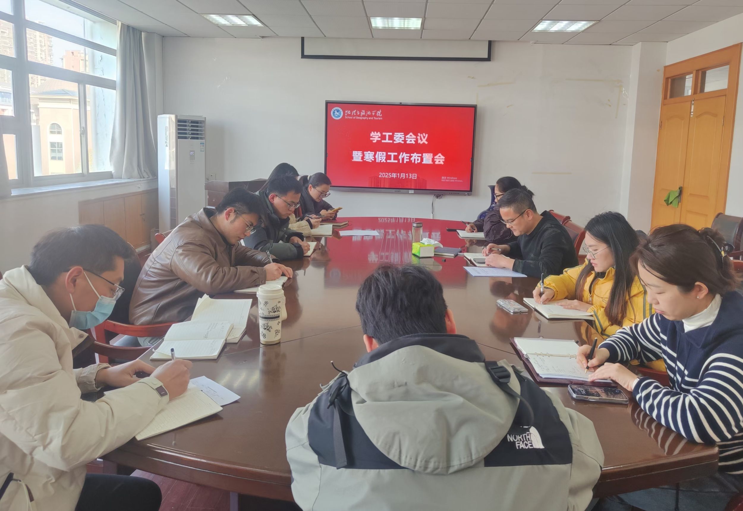1月13日下午,565net必赢客户端召开学工委会议暨寒假工作布置会,学院党委副书记付勇及全体专兼职辅导员参会。