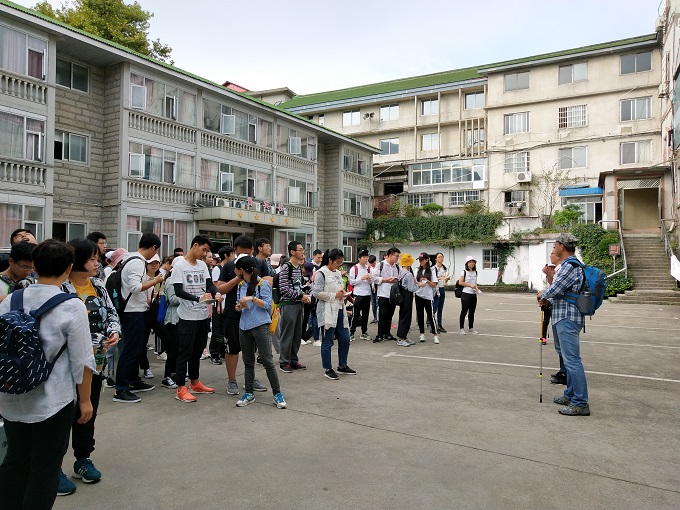 行进途中,孙叶根老师和汪青老师沿途讲解植被种类及分布特征,在回龙路、日照峰、含鄱口等植被茂密繁多的地方,植物地理学老师孙叶根指导学生自行辨认植物,组织各实习小组拉植物样方,并采集植物标本;在气象台,了解牯岭气象站的发展历程,认识气象监测设备,感叹庐山独特气候特征。为了让我们直观感受庐山气候与天气的独特性,牯岭气象站工作人员说:“庐山外的云,飘到了庐山便成了雾,我们就要监测发布预警信号了!”;涉及路边岩石岩性以及地貌特征,地貌学老师胡春生和地质学老师吴立讲解得生动形象;在土壤剖面观察和山地土壤垂直地带性分布上张平究老师、房莉老师、给予了很大的帮助与指导;朱永恒老师指导学生辨认与收集土壤动物以及分析土壤动物分布特点……
