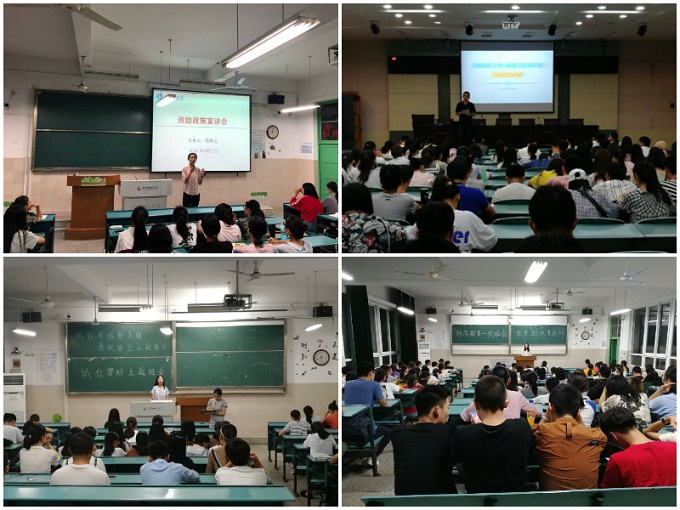 学院各年级各专业辅导员均召开了主题班会、资助小课堂,专题讲解国家资助政策、学校资助政策和学院的社会奖助学金,让同学们全面了解和学习国家奖学金、国家励志奖学金、国家助学金的奖励条件和范围,以及国家助学贷款的申请处理与还款程序,艰苦边远地区基层单位就业的高校毕业生学费补偿和国家助学贷款代偿政策。毕业班辅导员专门召开诚信还款主题班会,做好国家助学贷款毕业确认工作,宣讲借款人应承担的责任和义务以及贷款逾期后果。学院累计召开资助政策宣讲主题班会和专场报告26余次,累计覆盖了2000余名学生(含2014级毕业班学生和2018级新生)。
