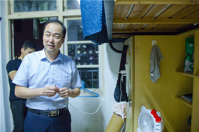 在寝室走访中,乔静不时提起安全问题,叮嘱同学们注意人身安全、交通安全和财物安全。并强调寝室电器的正确使用。他举例曾因不当用电发生的火灾,希望同学们能提高安全防范意识,杜绝各类安全隐患。