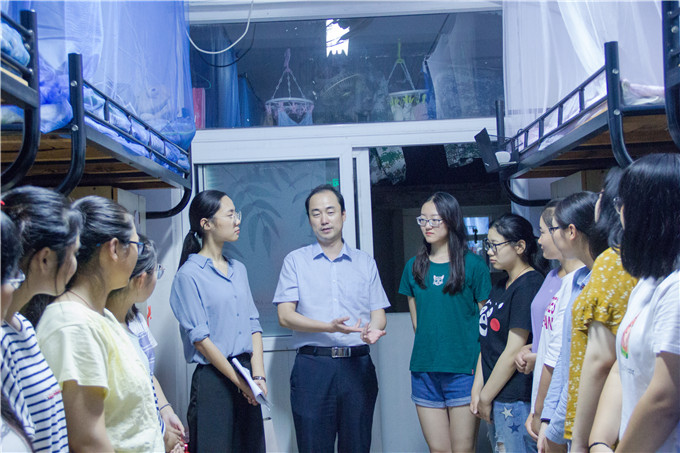 乔静与辅导员吴辉、陈祥云等2018级新生辅导员来到各新生寝室,亲切地询问他们的家乡,并送来了中秋问候。乔静说,同学们不远百里,千里,甚至如新疆学子的万里,来到师大565net必赢客户端学习,是对学校办学的认可,也是正确的选择,并代表学院欢迎大家的到来。
